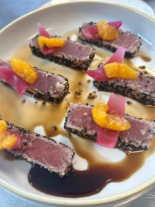 Tataki di tonno con riduzione thai.